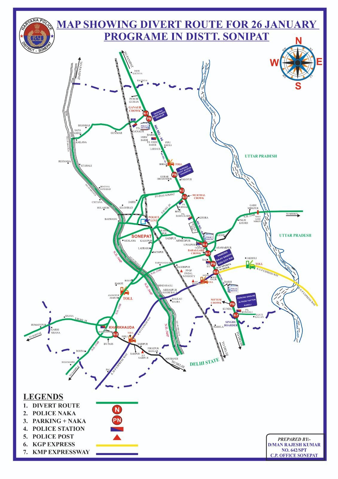 - जीटी रोड गन्नौर फ्लाईओवर पर नाका लगाकर पानीपत से आने वाले भारी वाहनों को गन्नौर होते हुए खुबडू झाल की ओर मोड़ा जाएगा।