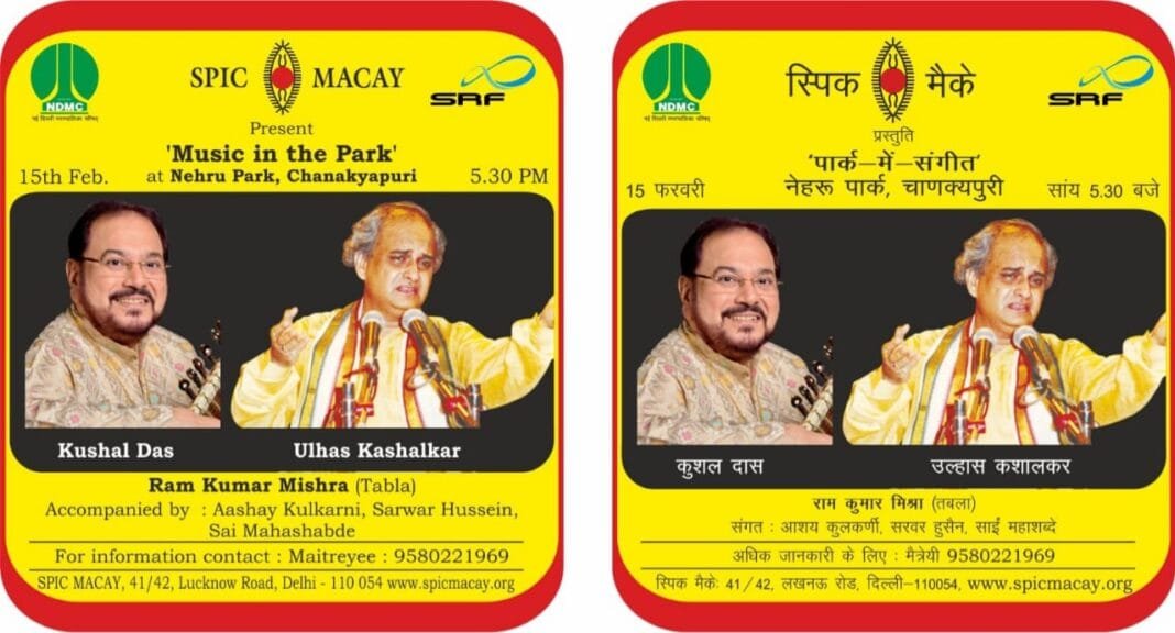 शाम को प्रसिद्ध सितारवादक पंडित कुशल दास और हिंदुस्तानी शास्त्रीय गायक उल्हास कशालकर की प्रस्तुति होगी। कलाकारों के साथ राम कुमार मिश्रा, आशय कुलकर्णी, विनय मिश्रा, सरवर हुसैन और साईं महाशब्दे सहित प्रतिभाशाली संगीतकारों का एक समूह होगा, जो संगीत अनुभव में गहराई और समृद्धि जोड़ देगा। इस कार्यक्रम के लिए नेहरू पार्क में प्रवेश नीति मार्ग से है और सभी के लिए यह निःशुल्क है। संगीत कार्यक्रम नेहरू पार्क की खूबसूरत शांत सेटिंग में आयोजित किए जाते हैं जहां दर्शक प्रसिद्ध और उभरते कलाकारों के मुफ्त लाइव प्रदर्शन का आनंद ले सकते हैं।