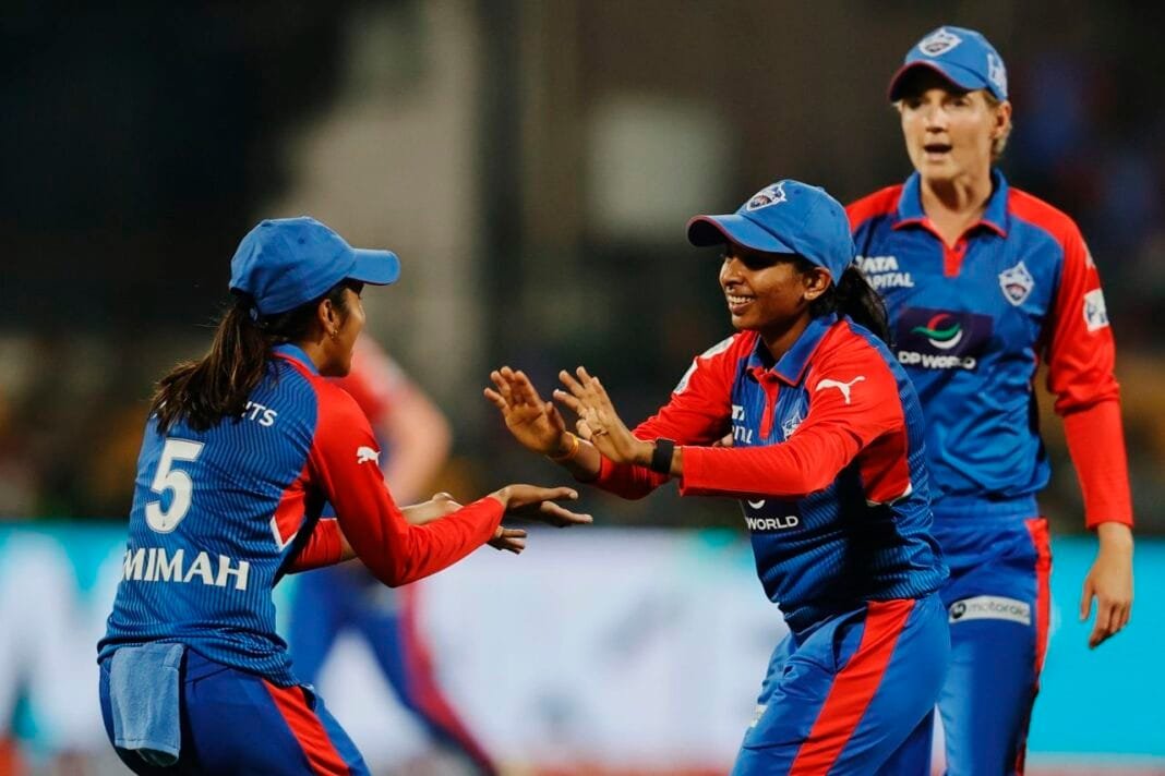 टॉस जीतकर पहले गेंदबाजी करते हुए दिल्ली की शुरुआत अच्छी रही। सलामी बल्लेबाज यास्तिका भाटिया (11) और हीली मैथ्यूज (22) के विकेट जल्दी गिर गए। स्किवेर ब्रंट ने हालांकि अपना शानदार फॉर्म बरकरार रखते हुए कप्तान हरमनप्रीत (18) के साथ तीसरे विकेट के लिये 38 रन जोड़े। हरमनप्रीत को 11वें ओवर में जोनासेन ने पगबाधा आउट किया। स्किवेर ब्रंट ने 14वें ओवर में जोनासेन को रिटर्न कैच थमाया। सजीवन साजना भी दिल्ली की कप्तान मेग लैनिंग को मिन्नू मणि की गेंद पर एक्स्ट्रा कवर में आसान कैच देकर लौटी।