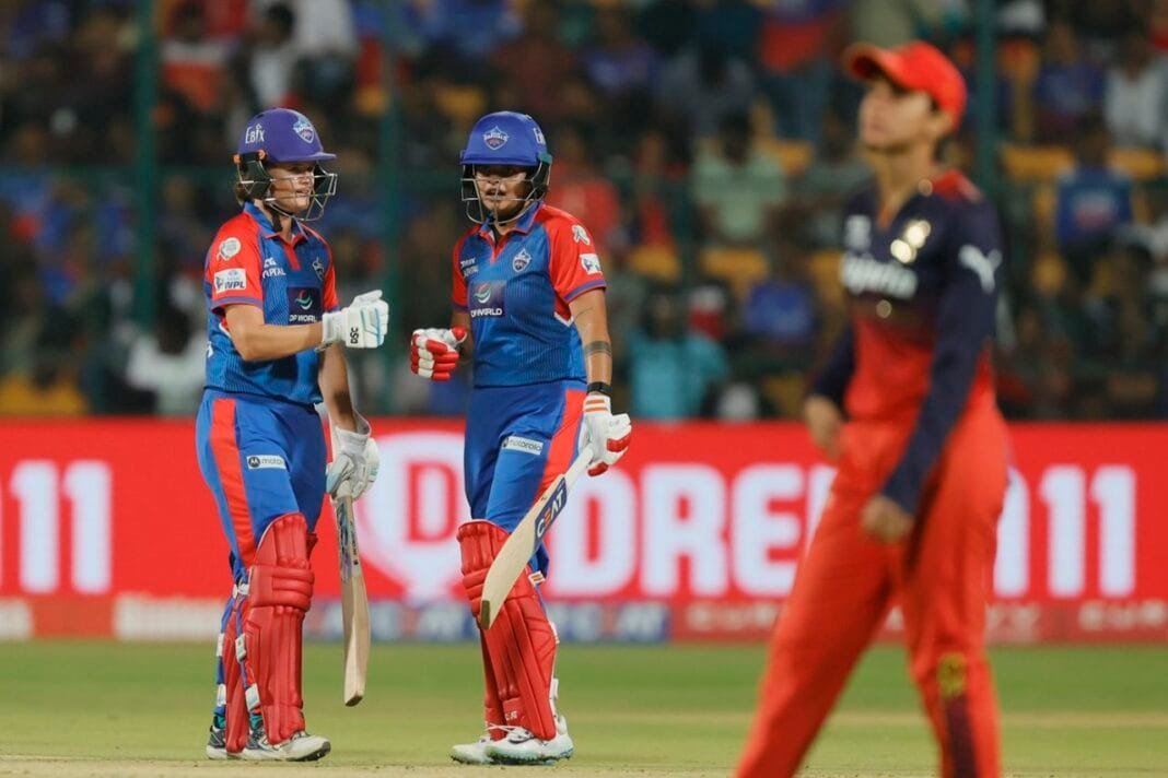 दोनो छोर से गेंदबाजों की हो रही धुनायी से क्षेत्ररक्षक भी असहज दिखे। कप्तान स्मृति मंधाना ने इस जोड़ी को तोड़ने के लिये हरसंभव प्रयोग किये और अपने सात गेंदबाजों को उतारा मगर नतीजा सिफर रहा और दिल्ली ने बड़ी ही आसानी से यह मैच अपने नाम कर लिया। शेफाली ने अपनी अर्धशतकीय पारी में 43 गेंद खेलकर आठ चौके और चार छक्के लगाये जबकि जॉनासन ने 38 गेंदों की पारी में नौ चौके और एक छक्का जड़ा। इससे पहले दिल्ली की एकमात्र अर्धशतकवीर पेरी ने राघवी विष्ट (33) के साथ तीसरे विकेट के लिये 66 रन की भागीदारी की। उन्होने अपनी नाबाद अर्धशतकीय पारी के दौरान 47 गेंदों में तीन चौके और तीन छक्के लगाये। राघवी के आउट होने के बाद बेंगलुरु की रन गति धीमी रही और आखिरी 23 गेंदों में टीम 28 रन ही जोड़ सकी। बेंगलुरु की कप्तान स्मृति मंधाना का बल्ला आज नहीं चला और वह मात्र आठ रन का ही योगदान दे सकी। डेनिएल वायट ने 21 रन बनाये। दिल्ली के लिये शिखा पांडे और श्रीचरणी ने दो दो विकेट चटकाये। मरीजान कॉप को एक विकेट मिला।