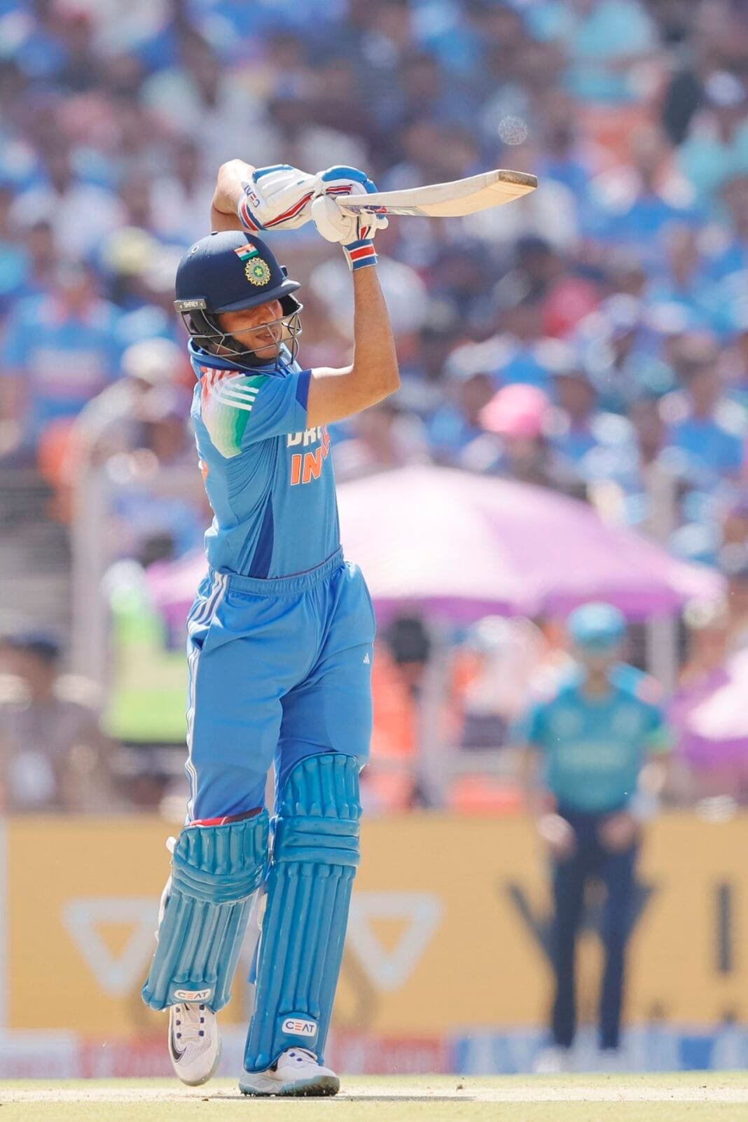 अहमदाबाद में बल्लेबाजी के लिए गिल का प्यार जारी रहा और उन्होंने एक और प्रभावशाली प्रदर्शन किया। दाएं हाथ के इस बल्लेबाज ने इससे पहले फरवरी 2023 में न्यूजीलैंड के खिलाफ इसी मैदान पर नाबाद 126 रन बनाकर अपना सर्वोच्च टी20 अंतरराष्ट्रीय स्कोर दर्ज किया था। एक महीने बाद, उन्होंने बॉर्डर-गावस्कर ट्रॉफी में ऑस्ट्रेलिया के खिलाफ इसी मैदान पर अपना पहला टेस्ट शतक बनाया, जिसमें उन्होंने 251 गेंदों पर 128 रन बनाए। अहमदाबाद में नौ पारियों में गिल का औसत लगभग 80 का रहा है, जिससे यह जिम्बाब्वे के हरारे स्पोर्ट्स क्लब के बाद उनका दूसरा सबसे अधिक उत्पादक स्थल बन गया है, जहां उन्होंने 400 से अधिक रन बनाए हैं। गिल 102 गेंदों पर 14 चौकों और तीन छक्कों की मदद से 112 रन बनाकर आउट हुए।