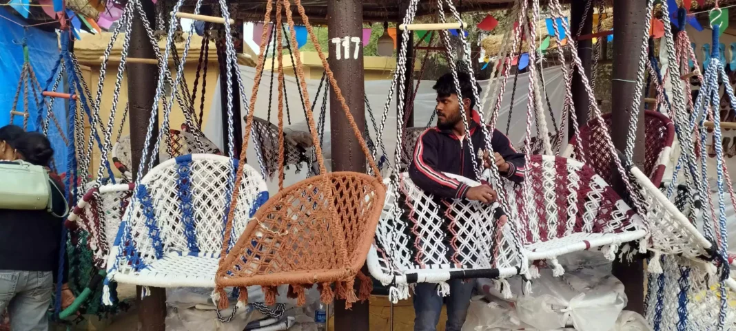 फरीदाबाद, (वेब वार्ता)। 38वें सूरजकुंड अंतरराष्ट्रीय शिल्प मेले में शिल्पकारों द्वारा तैयार किए विभिन्न प्रकार के सामान की पर्यटक खूब खरीदारी कर रहे हैं। मेला परिसर शिल्प महाकुंभ के रूप में सजा है और देश-विदेश के शिल्पकारों की स्टॉल्स पर एक से एक बेहतरीन और आकर्षक उत्पाद उपलब्ध हैं। इन्हीं उत्पादों में से कुछ स्टॉल पर कुर्सीनुमा झूले भी लोगों का ध्यान अपनी ओर खींच रहे हैं। मेला परिसर में पश्चिम बंगाल से आए स्टॉल संचालक सम्राट ने बताया कि कुर्सीनुमा झूले अलग-अलग आकार और डिजाइन में तैयार किए गए हैं। पर्यटक इन झूलों को आंगन, पार्क या बालकनी में लगाकर अपने घर की शोभा बढ़ा सकते हैं। अलग-अलग आकार और डिजाइन के झूलों को लकड़ी और सूत की रस्सी से तैयार किया जाता है। ये झूले काफी आरामदायक होने के साथ-साथ इनसे गिरने का डर भी नहीं रहता है। मेले में काफी संख्या में ये झूले खरीदने के लिए पर्यटक आ रहे हैं।