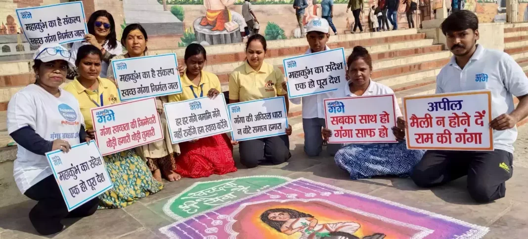 ब्रह्मा घाट पर आकर्षक रंगोली बनाकर संदेश दिया गया— “सबका साथ हो, गंगा साफ हो”, “हर-हर गंगे”, “नमामि गंगे”, “नहीं रुकेंगे, हम स्वच्छ करेंगे”। इस पहल को श्रद्धालुओं का पूरा समर्थन मिला।