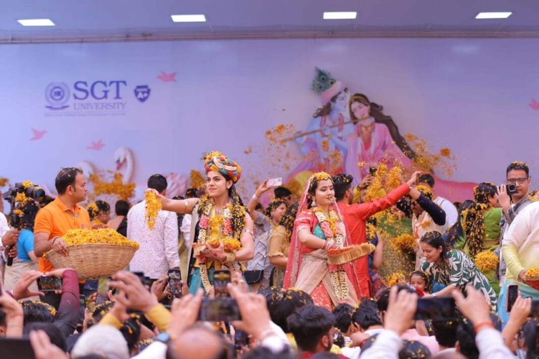 एसजीटीयू में राधा-कृष्ण संग फूलों की होली, मानो बृज उतर आया परिसर में