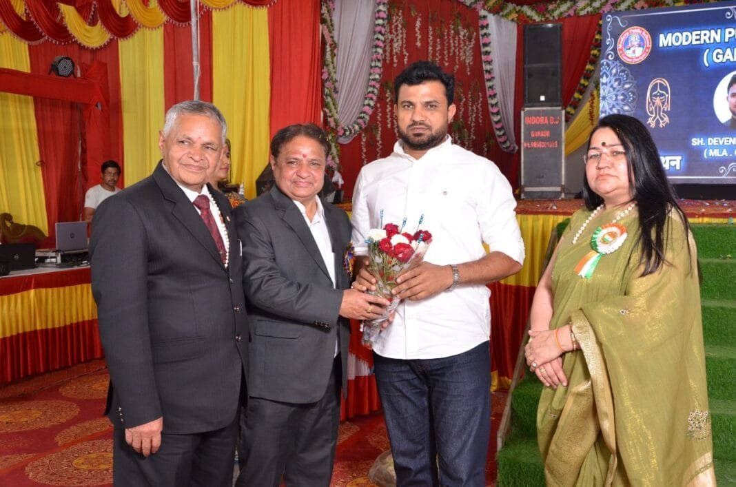 गन्नौर/सोनीपत, राजेश आहूजा (वेब वार्ता)। रेलवे रोड स्थित चिराग गार्डन में रविवार को शहर के मॉडर्न पब्लिक स्कूल का वार्षिकोत्सव हर्षोल्लास से मनाया गया। कार्यक्रम में बतौर मुख्य अतिथि के रूप में क्षेत्रीय विधायक देवेंद्र कादियान ने शिरकत की। कार्यक्रम की शुरुआत दीप प्रज्वलन से हुई। जिसके बाद विद्यालय परिवार और लोगों ने विधायक का फूलमाला पहना जोरदार स्वागत किया। कार्यक्रम में स्कूली विद्यार्थियों ने सांस्कृतिक प्रस्तुतियों के माध्यम से दर्शकों का मन मोह लिया। इस दौरान स्कूल के मेधावी विद्यार्थियों को पुरस्कृत किया गया। विधायक देवेंद्र कादियान ने कहा कि विद्यालय के वार्षिकोत्सव में बच्चों के सामाजिक कर्तव्य बोध का मूल्यांकन होता है। यह अभिभावकों के लिए भी अपने बच्चों में ज्ञान के स्तर को परखने का अच्छा अवसर है। कहा कि अच्छी शिक्षा एवं संस्कार ही जीवन को एक नया रूप देते है। कार्यक्रम समापन पर स्कूल प्रबंधक अशोक वर्मा व प्रिंसिपल महक धनखड़ ने मुख्यातिथि देवेंद्र कादियान को स्मृति चिन्ह भेंट कर सम्मानित किया।