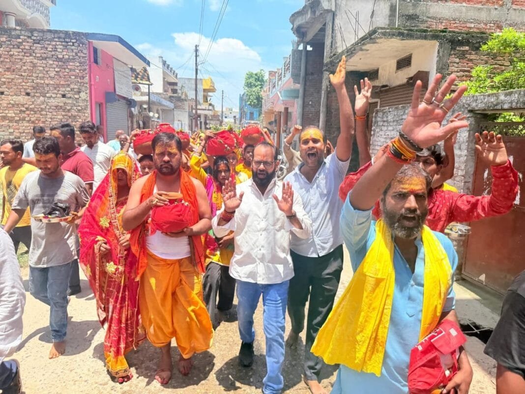 इस पावन अवसर पर नगर के विभिन्न क्षेत्रों से पधारे सभी सम्मानित श्रद्धालु जनों की उपस्थिति में धार्मिक वातावरण और वैदिक मंत्रोच्चारण के बीच कलश यात्रा निकाली गई, जिसमें महिलाएं, युवतियां और श्रद्धालु जन भारी संख्या में शामिल हुए।