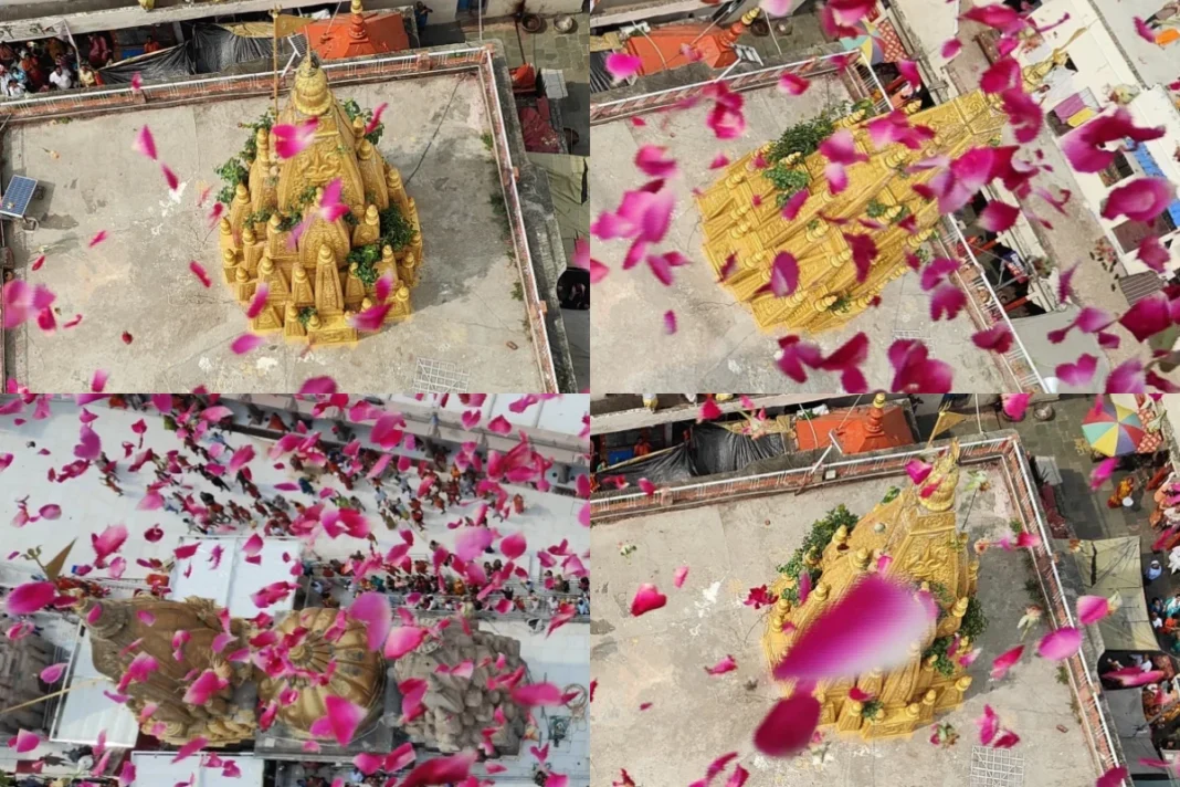 वाराणसी के जिलाधिकारी और पुलिस कमिश्नर ने काशी विश्वनाथ मंदिर परिसर के आसपास हेलीकॉप्टर से फूल बरसाए। मार्कण्डेय महादेव मंदिर में पहुंचे भक्तों पर भी पुष्पवर्षा की गई।