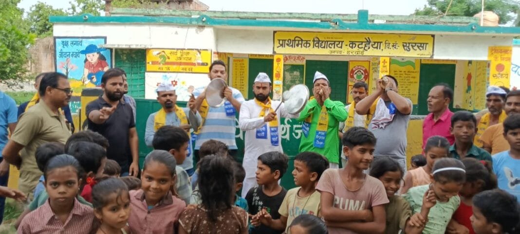 ‘आप’ के प्रदेश कार्यालय के निर्देशानुसार, हरदोई के ग्राम पंचायत माधोपुर स्थित प्राथमिक विद्यालय कठईया में एक प्रतीकात्मक कार्यक्रम आयोजित किया गया, जहाँ थाली और शंख बजाकर विरोध दर्ज कराया गया।