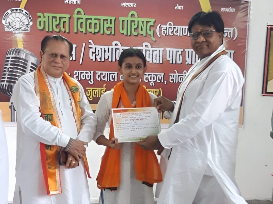 डीएवी पुलिस पब्लिक स्कूल सोनीपत की छात्रा ने काव्य गायन प्रतियोगिता में द्वितीय स्थान प्राप्त किया