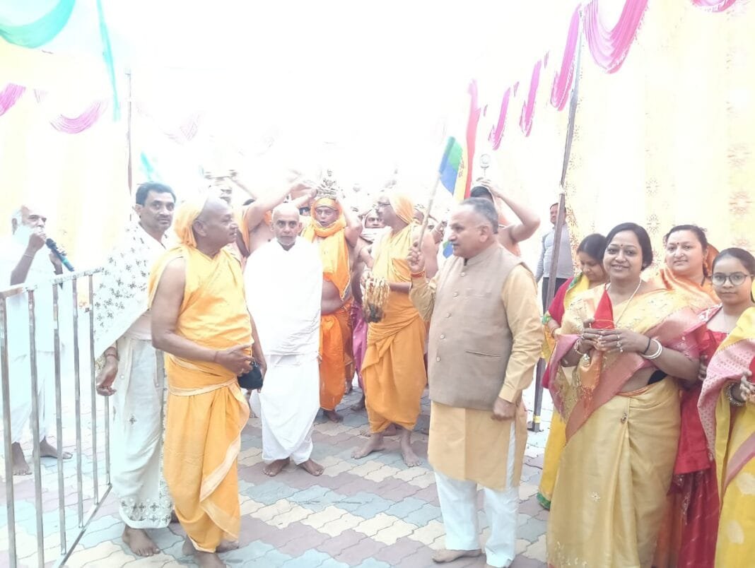 सोनीपत, रजनीकांत चौधरी (वेब वार्ता)। दिगंबर जैन मंदिर मंडी में धूमधाम से सिंह चक्र विधान का आठ दिवसीय पाठ शुरू हुआ। पाठ शुरू होने से पूर्व बैंड बाजों के साथ शांतिनाथ भगवन की प्रतिमा का नगर भरमन करवाया गया, यात्रा में महिलाएं सिर पर कलश उठाये साथ चल रही थी।