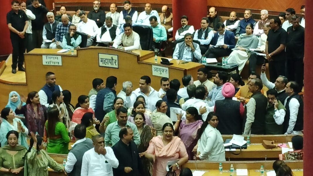 नई दिल्ली, (वेब वार्ता)। दिल्ली नगर निगम मुख्यालय सिविक सेंटर में निगम की विशेष बजट सत्र की बैठक में सोमवार को संशोधित बजट अनुमान 2024-25 और बजट अनुमान 2025-26 पर निगम में नेता विपक्ष सरदार राजा इकबाल सिंह ने बजट भाषण पढ़ना शुरू किया तो सत्ता पक्ष में बैठे आम आदमी पार्टी के पार्षदों को यह भाषण रास नहीं आया और बिना किसी जायज वजह के हंगामा शुरू कर दिया।