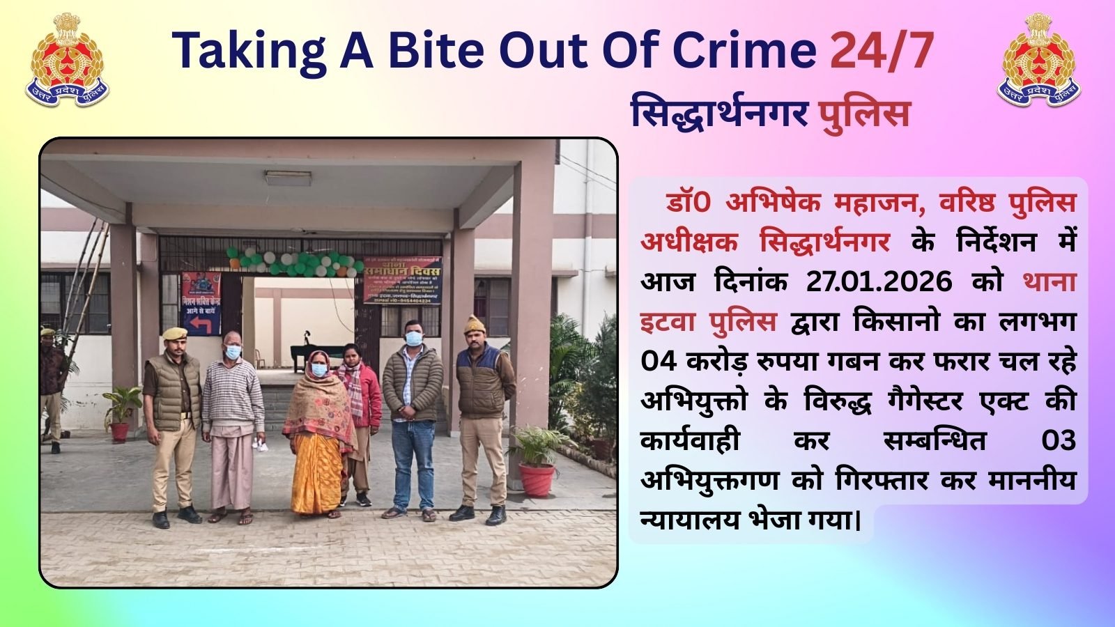 सिद्धार्थनगर में किसानों से ₹4 करोड़ की ठगी करने वाला गिरोह गिरफ्तार